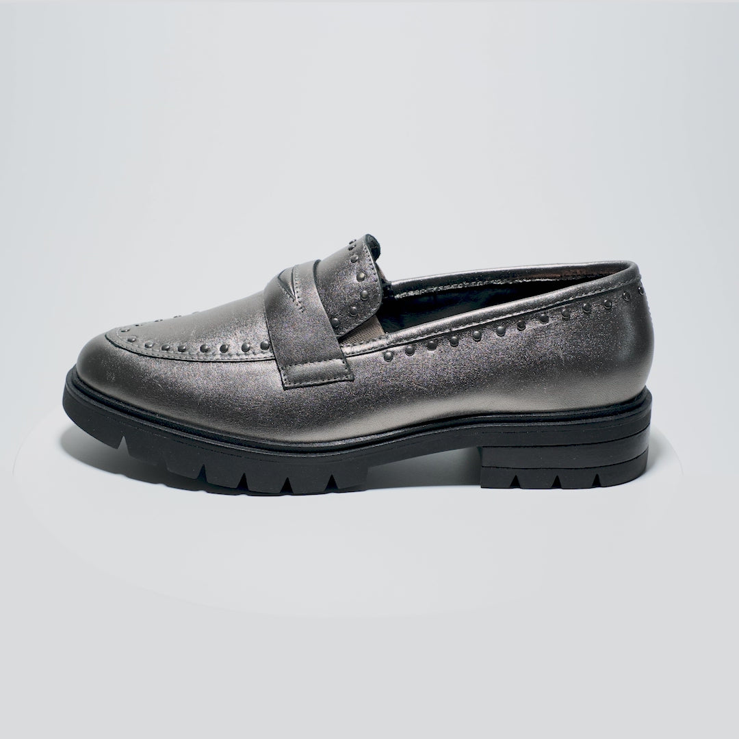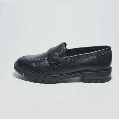 エッジの効いたアクセントのスタッズを用いた新作ローファー。