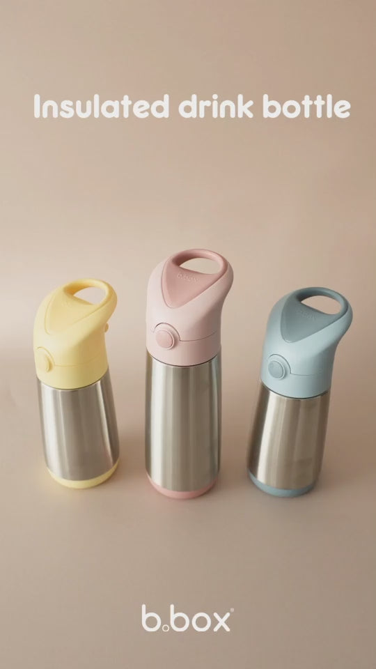 500mlの子供用水筒。3層断熱のステンレス製ボトルで、冷たいものは最長15時間、あたたかいものは最長8時間、温度を保ちます。お出かけにも便利な保冷保温が可能なドリンクボトルです。持ち運びに便利なキャリーハンドルと、ワンプッシュで開くボタン式の蓋が特徴です。